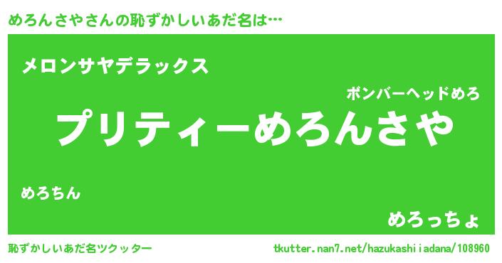 | 男性向けラノベタイトル風あだ名 | 『転生したらめろんさやだった件』 |
