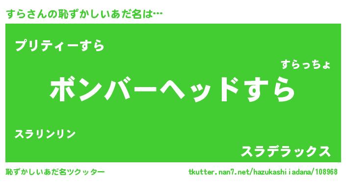 | 欧米人風あだ名 | 『ダニエルすら』『マイケルすら』 |