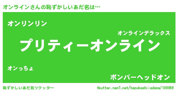 | 胡散臭い通販商品みたいなあだ名 | 『あなたにだけ特別に提供する100年もののヴィンテージワイン…その名も「オンライン」』 |