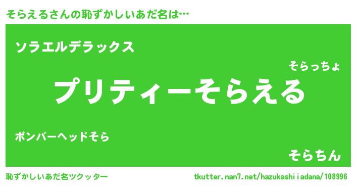 | ヒーロー風カッコイイあだ名 | 『スーパーソラエル』『究極戦士ソラエル』 |