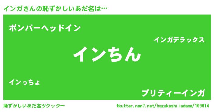 | ヘコむあだ名 | 『インガ(爆)』『インっふぃ~』 |