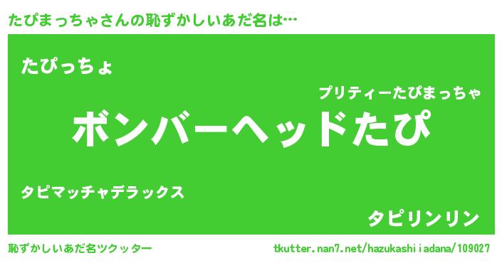 | 意味不明あだ名 | 『住所不定無職たぴまっちゃ(40歳)』 |
