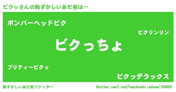 | ヒーロー風カッコイイあだ名 | 『ウルトラビクッマン』『愛の使者ビクッ』 |