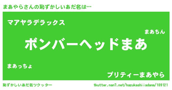 | ヒーロー風カッコイイあだ名 | 『慈愛の使者まあやら』『仮面マアダー』 |
