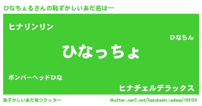 | 欧米人風あだ名 | 『ひなちぇるクリステル』 |