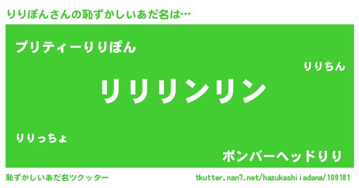 | 意味不明あだ名 | 『とにかく怪しいりりぽん』 |