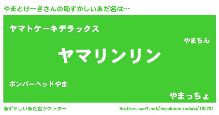 | 意味不明あだ名 | 『とにかく怪しいやまとけーき』 |