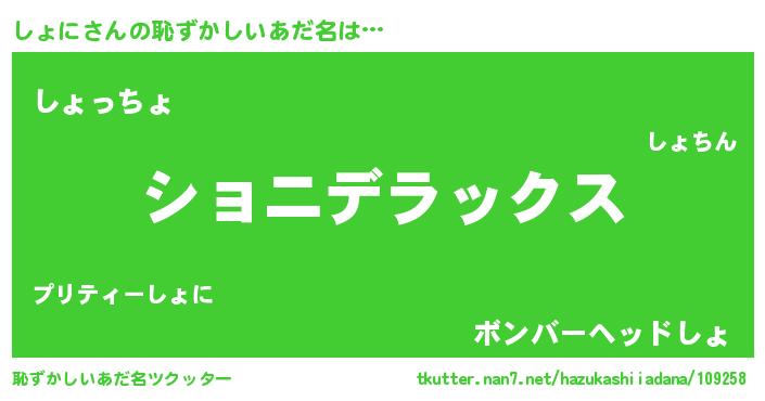 | ヘコむあだ名 | 『酢こんぶ』『しょに(笑)』『しょを』 |