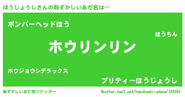 | 男性向けラノベタイトル風あだ名 | 『転生したらほうじょうしだった件』 |