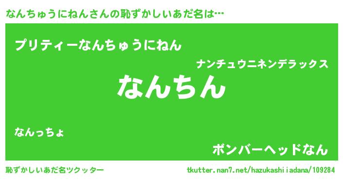 | ヘコむあだ名 | 『なんちゅうにねん(爆)』『なんっふぃ~』 |