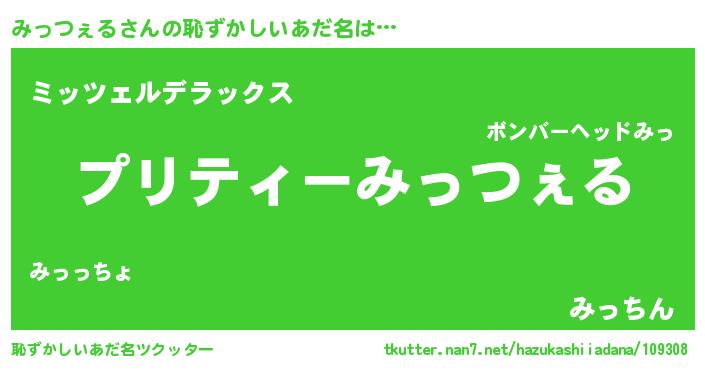 | 胡散臭い通販商品みたいなあだ名 | 『億万長者になれる霊験あらたかなお札…その名も「みっつぇる」』 |