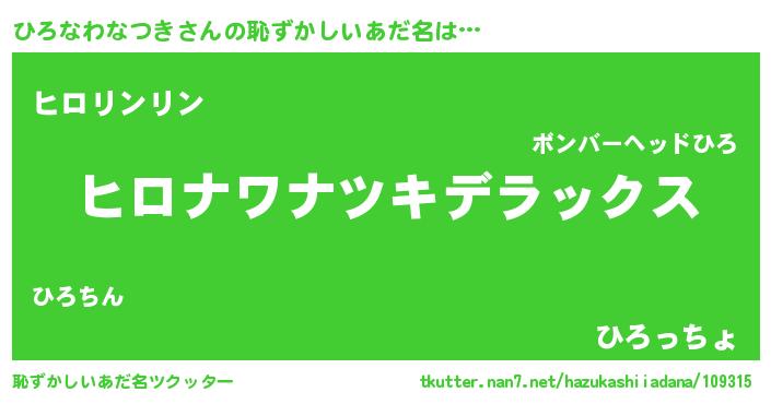 | 意味不明あだ名 | 『自称ひろなわなつき』 |