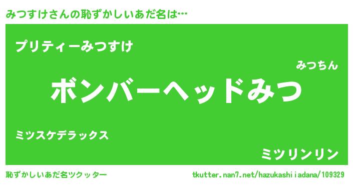 | ヘコむあだ名 | 『みつにー』『みつお』『なまこ酢』 |