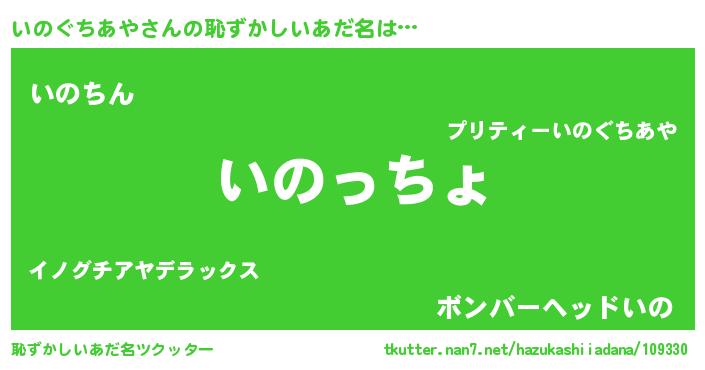 | 男性向けラノベタイトル風あだ名 | 『転生したらいのぐちあやだった件』 |