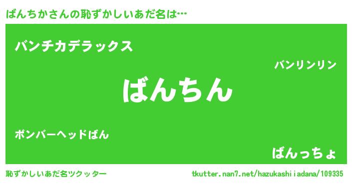 | ヒーロー風カッコイイあだ名 | 『ネオバンチカ』『ウルトラ戦士バンチカ』 |
