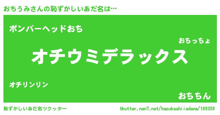 | 意味不明あだ名 | 『自称おちうみ』『永久保存おちうみ』 |