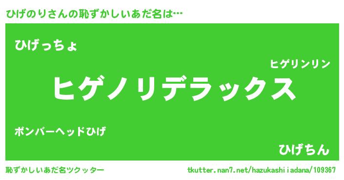 | 男性向けラノベタイトル風あだ名 | 『Re:ひげのりから始める異世界生活』 |