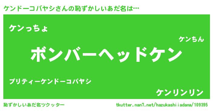 | ヘコむあだ名 | 『豆乳』『ケンっ子』『ケンにゅー』 |