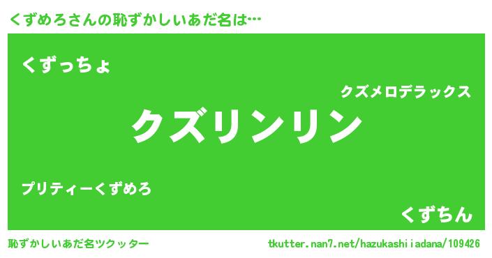 | 意味不明あだ名 | 『とにかく怪しいくずめろ』 |