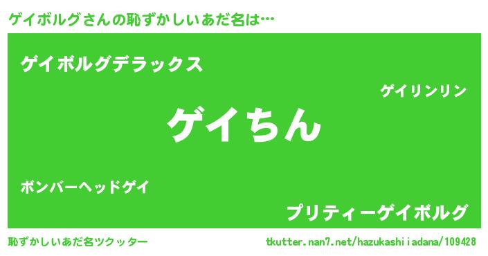 | ヘコむあだ名 | 『ゲイボルグ(爆)』『ゲイふぇ~』 |
