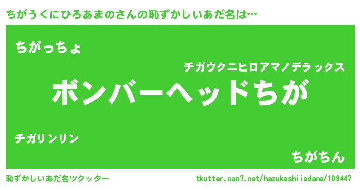 | 意味不明あだ名 | 『住所不定無職ちがうくにひろあまの(86歳)』 |