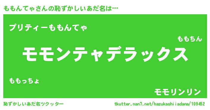 | 意味不明あだ名 | 『自称ももんてゃ』『ペロリンももんてゃ』 |