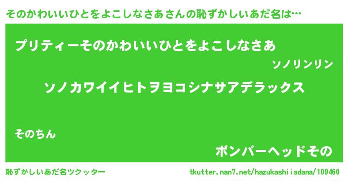 | 意味不明あだ名 | 『自称そのかわいいひとをよこしなさあ』 |