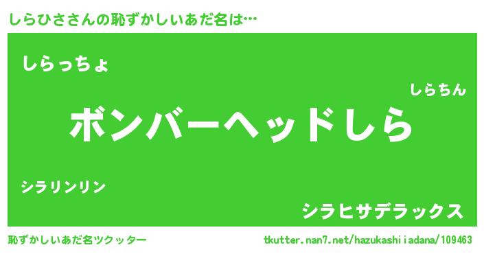 | 意味不明あだ名 | 『住所不定無職しらひさ(98歳)』 |