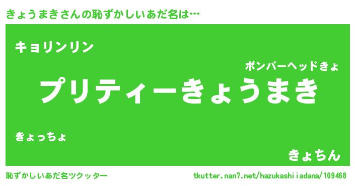 | ヒーロー風カッコイイあだ名 | 『スーパーキョウマキ』『炎刃騎士キョ』 |