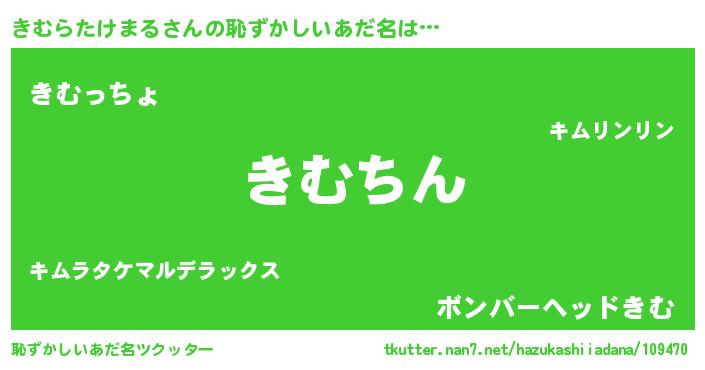 | ヒーロー風カッコイイあだ名 | 『ネオキムラタケマル』『仮面キムダー』 |