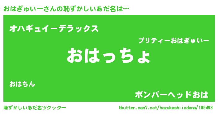 | ヘコむあだ名 | 『なまこ酢』『おはもー』『おはを』 |