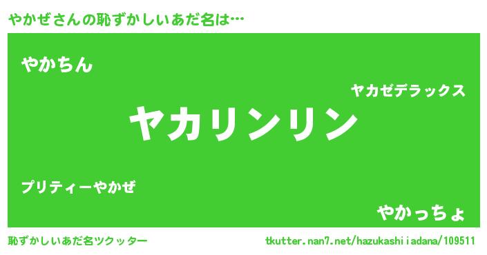 | ヒーロー風カッコイイあだ名 | 『黄金騎士ヤカ』『仮面ヤカダー』 |