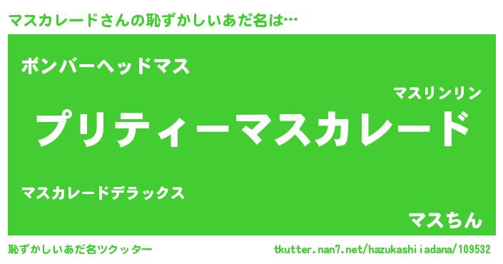 | ヘコむあだ名 | 『マスにゅー』『マスカレード(小並感)』 |