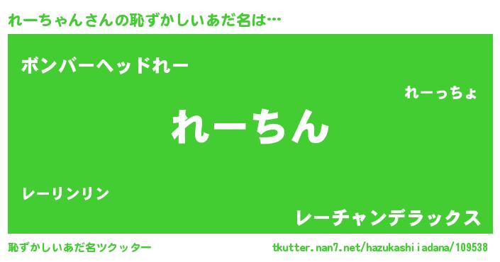| 意味不明あだ名 | 『永久保存れーちゃん』『自称れーちゃん』 |