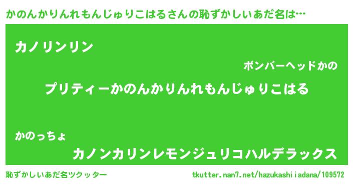 | 伝説のあだ名 | 『封印されし竜騎士かのんかりんれもんじゅりこはる』 |