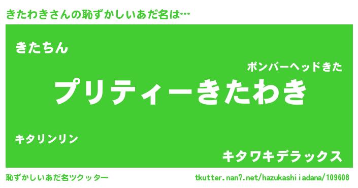 | 意味不明あだ名 | 『ペロリンきたわき』『永久保存きたわき』 |