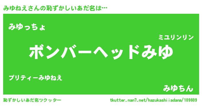 | 欧米人風あだ名 | 『みゆねえ・ステッグマイヤー』 |