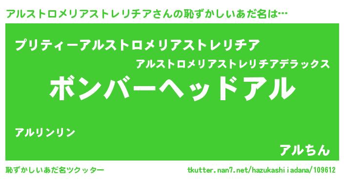 | 男性向けラノベタイトル風あだ名 | 『ノーゲーム・ノーアルストロメリアストレリチア』 |