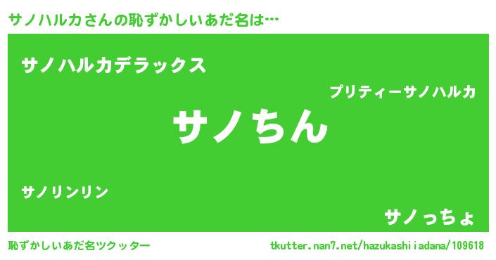 | ヒーロー風カッコイイあだ名 | 『ネオサノハルカ』『最強戦士サノハルカ』 |
