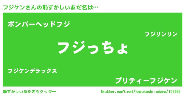 | 男性向けラノベタイトル風あだ名 | 『フジケン~年齢イコール彼女いない歴の魔法使い~』 |