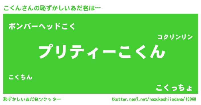 | ヒーロー風カッコイイあだ名 | 『スーパーコクン』『正義の使者こくん』 |