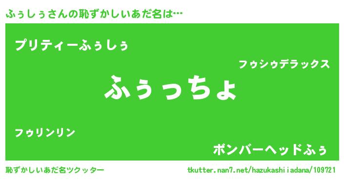 | ヒーロー風カッコイイあだ名 | 『ウルトラふぅしぅマン』『仮面フゥダー』 |