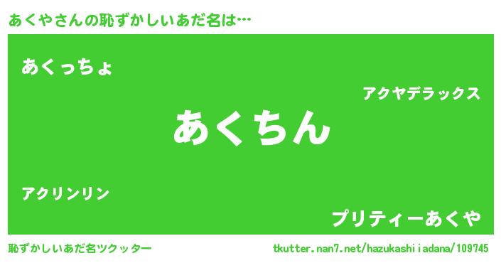 | 意味不明あだ名 | 『永久保存あくや』『あくやフォーエバー』 |