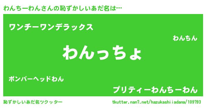 | 意味不明あだ名 | 『わんちーわんフォーエバー』 |