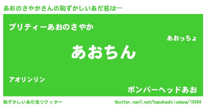 | ヘコむあだ名 | 『あおのさやか(苦笑)』『あおにゅー』 |