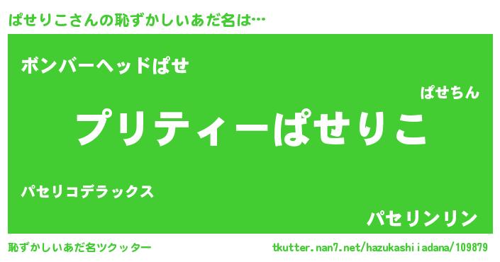 | 男性向けラノベタイトル風あだ名 | 『ぱせりこの憂鬱』 |