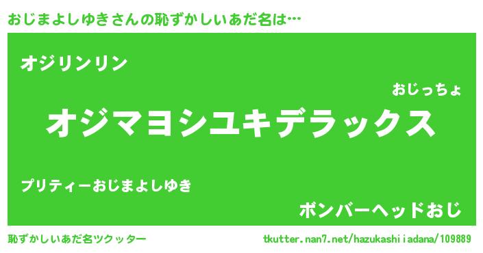 | 男性向けラノベタイトル風あだ名 | 『おじまよしゆき~年齢イコール彼女いない歴の魔法使い~』 |