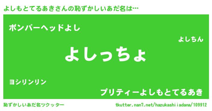 | ヘコむあだ名 | 『酢こんぶ』『よしにゅー』 |