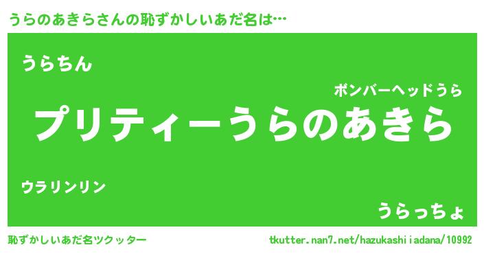 | ヒーロー風カッコイイあだ名 | 『スーパーウラノアキラ』『仮面ウラダー』 |