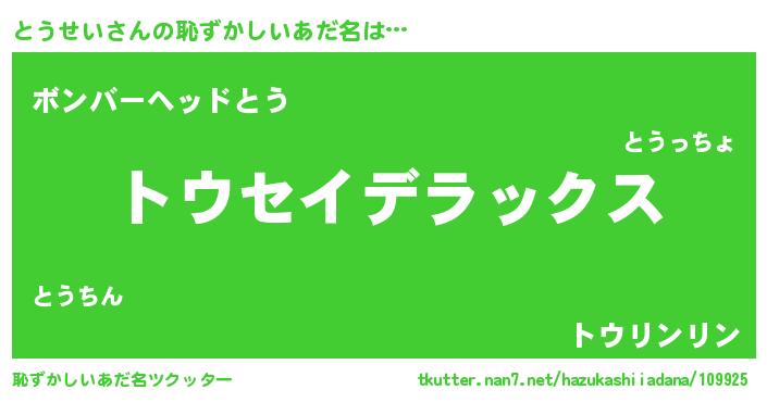 | ヘコむあだ名 | 『とうっちょ』『豆乳』『とうにゅー』 |